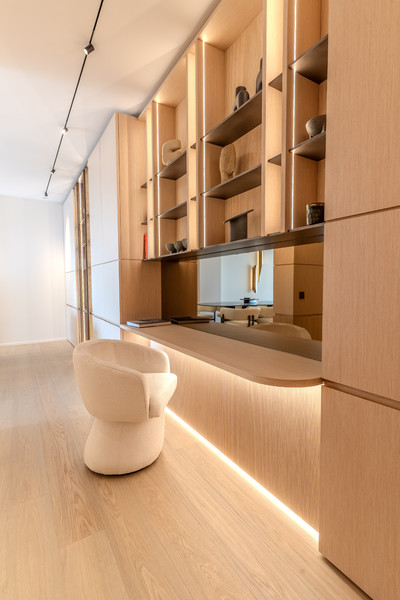 Entrée avec rangements intégrés, et coin bureau.